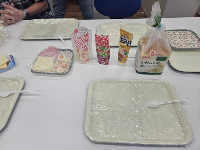 ハム、チーズ、ツナ、玉子、野菜を 好き好きにパンにのせて挟みます(*’▽’)
