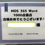 MOS 365 Word 満点合格おめでとうございます♪(チャレジョブセンター桶川)